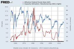 - Interest rate spread (10-year Treasury vs. Federal Funds target) — The interest rate spread is often referred to as the yield curve and implies the expected direction of short-, medium- and long-term interest rates. Changes in the yield curve have been the most accurate predictors of downturns in the economic cycle. This is particularly true when the curve becomes inverted, that is, when the longer-term returns are expected to be less than the short rates.