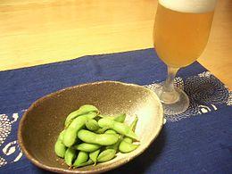 Edamame is a popular side dish at Japanese izakaya restaurants with local varieties being in demand, depending on the season.[9] Salt and garlic are typical condiments for edamame. In Japan, a coarse salt wet with brine is preferred on beans eaten directly from the pod.[10][11]