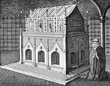 After the Battle of Lincoln (1217), it was traditionally claimed that Edmund's body was stolen by the Count of Melun and subsequently donated to the Basilica of Saint-Sernin in the French city of Toulouse by the future Louis VIII of France.[26] The first record of this is a relic list for Saint-Sernin of around 1425, which included St Edmund among the basilica's relics.[26] After the city was saved from the plague in the years from 1628 to 1631 — by the saint's intercessions — the city built, in 1644,[26] a new shrine for his relics in gratitude for its deliverance: his cult flourished there for over two centuries. Edmund's shrine was of silver and adorned with solid silver statues and when his relics were translated to it, the population came for eight days to honour the saint.[27]