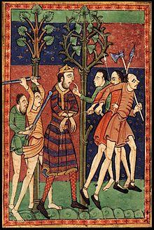 A medieval illumination depicting the death of Edmund the Martyr on 20 November 869 by the Vikings | |