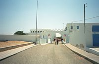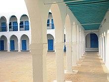 The ancient El Ghriba Synagogue (Arabic: كنيس الغريبة), also known as the Djerba Synagogue, is located on the Tunisian island of Djerba. It is situated in the Jewish village of Hara Seghira (currently known as er-Riadh), several kilometres southwest of Houmt El Souk, the main town of Djerba.