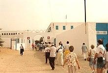 Djerba is home to around 1,200 Jews,[1] and El Ghriba is an important feature of Jewish life on the island.[2] According to legend, the construction of the synagogue goes back to the High Priests' escape following the destruction of Solomon's Temple by the Babylonians under Nebuchadnezzar II in the year 586 BCE (or, alternately, the destruction of the Second Temple in 70 CE). The High Priests carried with them a door and a stone of the destroyed Temple. Thus the synagogue links the Jewish diaspora to the "sole sanctuary of Judaism".[3] In modern times, the local Jews are distinguished by their dress, which includes a black band around their pants, which signifies the destruction of the Temple.[4]