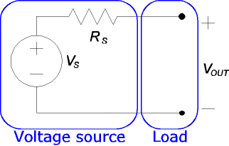 When discussing the effect of load on a circuit, it is helpful to disregard the circuit's actual design and consider only the Thévenin equivalent. (The Norton equivalent could be used instead, with the same results.) The Thévenin equivalent of a circuit looks like this: