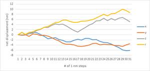 This reaction, also known as "electron attachment" or "dissociative electron attachment" is most likely to occur after the electron has essentially slowed to a halt, since it is easiest to capture at that point. The cross-section for electron attachment is inversely proportional to electron energy at high energies, but approaches a maximum limiting value at zero energy.[10] On the other hand, it is already known that the mean free path at the lowest energies (few to several eV or less, where dissociative attachment is significant) is well over 10 nm,[11][12] thus limiting the ability to consistently achieve resolution at this scale.