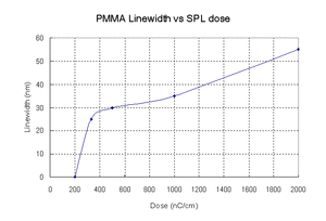 - A 20 nm resolution had also been demonstrated using a 3 nm 100 keV electron beam and PMMA resist.[32] 20 nm unexposed gaps between exposed lines showed inadvertent exposure by secondary electrons.