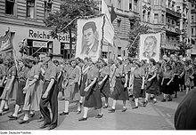 In 1946, Togliatti became the national secretary (the highest political position) of the PCI and called Berlinguer to Rome, where his talents let him enter the national leadership only two years later (at the age of 26, one of the youngest members ever admitted). In 1949, he was named national secretary of the FGCI, a post he held until 1956. The following year in 1950, he became president of the World Federation of Democratic Youth, an international anti-fascist youth organisation.[21] In 1957, Berlinguer, as a member of the central school of the PCI, abolished the obligatory visit to the Soviet Union, including political training there, that until then had been necessary for admission to the highest positions in the PCI.
