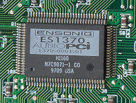 The AudioPCI ES1370 was developed by Ensoniq. One important feature of this chip was that it used the PCI bus, instead of the ISA bus commonly used by sound cards at that point. It was one of the first PCI sound card solutions to offer MS-DOS legacy compatibility without special hardware extensions to the standard PCI slot. When paired with a capable codec, such as the AK4531 (pre-AC'97), the ES1370 supported the then-latest in 3D audio positioning through 4-speaker surround sound. The chip was also a PCI bus master device that was designed to provide high-speed access to system RAM and resources, for sample synthesis data and effect processing. Depending on the drivers, it may also be called the Sound Blaster 64/128 in the device manager.