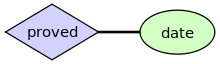 • a double line indicates a participation constraint, totality or surjectivity: all entities in the entity set must participate in at least one relationship in the relationship set;