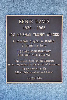 Ernest Davis (December 14, 1939 – May 18, 1963) was an American football player, a halfback who won the Heisman Trophy in 1961 and was its first African-American recipient.[1][2][3] Davis played college football for Syracuse University and was the first pick in the 1962 NFL Draft, where he was selected by the Cleveland Browns. Davis was diagnosed with leukemia that same year,[4][5] and died shortly after at age 23 without ever playing in a professional game.[3] He was inducted into the College Football Hall of Fame in 1979 and was the subject of the 2008 film The Express: The Ernie Davis Story.