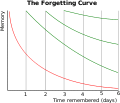 Some researchers state that the rate at which eyewitness memory declines is swift, and the drop-off is sharp, in contrast to the more common view that memory degrades slowly and consistently as time passes. The "forgetting curve" of eyewitness memory has been shown to be "Ebbinghausian" in nature: it begins to drop off sharply within 20 minutes following the initial encoding, and continues to do so exponentially until it begins to level off around the second day at a dramatically reduced level of accuracy.[32] As noted above, eyewitness memory is increasingly susceptible to contamination as time passes.[33]