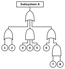 Fault tree analysis (FTA) is a top-down, deductive failure analysis in which an undesired state of a system is analyzed using Boolean logic to combine a series of lower-level events. This analysis method is mainly used in safety engineering and reliability engineering to understand how systems can fail, to identify the best ways to reduce risk and to determine (or get a feeling for) event rates of a safety accident or a particular system level (functional) failure. FTA is used in the aerospace,[1] nuclear power, chemical and process,[2][3][4] pharmaceutical,[5] petrochemical and other high-hazard industries; but is also used in fields as diverse as risk factor identification relating to social service system failure.[6] FTA is also used in software engineering for debugging purposes and is closely related to cause-elimination technique used to detect bugs.