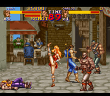 Unlike the SNES version of the first game, Final Fight 2 supports two-player simultaneous play and has a total of three playable characters. The only playable character from the first game to return is Mike Haggar. Two new player characters were introduced: Carlos Miyamoto and Maki Genryusai. In the game's plot, the three battle the resurgent Mad Gear gang at various locations around Asia and Europe to rescue Maki's sister and father, who are also the fiancée and teacher respectively of Guy from the first Final Fight.[1]