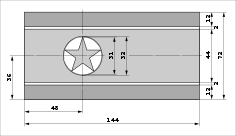 | Design | A wide red stripe at the center, bordered by a narrow white stripe both above and below, followed by a blue stripe. The central red stripe carries a five-pointed red star within a white circle near the hoist. |