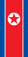 The flag of North Korea, also known as the Ramhongsaek Konghwagukgi (Korean: 람홍색공화국기; literally "blue and red-colored flag of the republic"), consists of a central red panel, bordered both above and below by a narrow white stripe and a broad blue stripe.[1] The central red panel bears a five-pointed red star within a white circle near the hoist.[2] The flag is banned from public use in South Korea due to its association with the ruling North Korean regime, although some exceptions for the usage of the flag exist.[3][4]