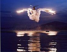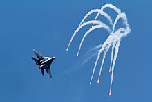 A flare or decoy flare is an aerial infrared countermeasure used by a plane or helicopter to counter an infrared homing ("heat-seeking") surface-to-air missile or air-to-air missile. Flares are commonly composed of a pyrotechnic composition based on magnesium or another hot-burning metal, with burning temperature equal to or hotter than engine exhaust. The aim is to make the infrared-guided missile seek out the heat signature from the flare rather than the aircraft's engines.