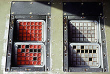 These payloads contain red phosphorus as an energetic filler. The red phosphorus is mixed with organic binders to give brushable pastes that can be coated on thin polyimide platelets. The combustion of those platelets yields a temperature-dependent signature. Endergonic additives such as highly dispersed silica or alkali halides may further lower the combustion temperature.[13]