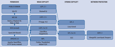 GNU General Public License (GPL) 2.0 58.69% GNU Lesser General Public License (LGPL) 2.1 11.39% Artistic License (Perl) 7.46% BSD License 6.50% Apache License 2.0 2.92% MIT License 2.58% GNU General Public Liense (GPL) 3.0 1.64% Mozilla Public License (MPL) 1.1 1.37% Common Public License 0.83% zlib/lippng License 0.64%