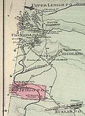 Freehold and South Heberton merged to create modern-day Freeland. Freeland was incorporated as a borough on September 11, 1876.[6] Two years later, in 1878, a frame school was built in the town. By 1880, the population of the community surpassed 600. In 1883, the first Slovak Lutheran Church in America was organized in Freeland.[7] The population steadily increased due to the expanding coal mining industry in the region. Many Europeans immigrated to Freeland up until the mid-20th century.[8]