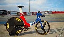 In 1996, GT won the commission to manufacture a highly aerodynamic bike design that would later become known as the "Superbike."[3] and later banned by Olympic regulations. A byproduct of a year-long development program with the U.S. national team known as Project '96, the bike featured a carbon graphite frame with no top tube, extremely thin seat and downtubes, a seat tube with a deep cutout to accommodate the rear wheel, as well as differently sized aerodynamic wheels.[4] Describing the bike, the U. S. Cycling Federation's track endurance coach Craig Griffin said "it's so thin and light, and it's as strong as anything built. It's so aerodynamic that when you look at it from the front, it disappears."[5] Controversially, just prior to the 96 Summer Olympics, Rebecca Twigg quit the team, citing her Superbike's ill fit[3] as one of the reasons for departing.