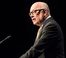 As Arts Minister, Brandis received significant criticism from the arts industry for a $105 million cut to the Australia Council for the Arts funding in the 2015-16 Australian Federal Budget.[35][36] The money was reallocated to a new program, The National Program for Excellence in the Arts (NPEA). The NPEA in turn has been criticised by many artists and arts organisations for lacking the "arms-length" funding principles that have applied to the relationship between the government and the Australia Council since its inception in the 1970s. These principles have traditionally had bipartisan support.[37][38][39] Brandis had been criticised previously for giving Melbourne classical music record label Melba Recordings a $275,000 grant outside of the usual funding and peer-assessment processes.[40] Brandis's changes to funding arrangements, including the quarantining of the amount received by Australia's 28 major performing arts companies, are widely seen to disadvantage the small-to-medium arts sector and independent artists.[38] Following Malcolm Turnbull's successful spill of the leadership of the Liberal party in September 2015, Brandis was replaced as arts minister by Mitch Fifield.[41]