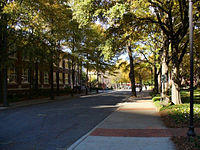 The Historic District of the Georgia Institute of Technology, also known as the Old Campus of Georgia Tech or the Hill District, is significant in the areas of architecture, education, engineering and science, as well as landscape architecture. The area is a Registered Historic Place and part of the central campus of Georgia Tech. Located in Midtown Atlanta, Georgia, United States, it is roughly bounded by North Avenue on the South, Bobby Dodd Stadium, a 55,000 seat football stadium on the East, Bobby Dodd Way on the North and Cherry Street on the West.