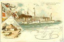 From February 1900 until 1902 Admiral Felix von Bendemann commanded the East Asia Squadron (Ostasiengeschwader) from his flagships SMS Irene, and then SMS Hertha. When Bendemann took command of the East Asia Squadron, he found it unprepared for the challenges presented by the brewing Boxer Rebellion. He actually had to borrow charts from the Russians and maps from the British in order to operate in the Yellow Sea.[9] Nevertheless, he forcefully advanced the idea of taking the Taku Forts and the ships under his command were able to make a noteworthy contribution in the Battle of Taku Forts (1900).[10] On 8 June 1900 he brought the large cruisers SMS Hansa, SMS Hertha and the small cruisers SMS Gefion and SMS Irene before the Taku Fort (together with warships of other nations) to land detachments of marines (Seebatallione) for the protection of their citizens in Tientsin. Lieutenant Otto Weniger, the commander of SMS Gefion then became commander of a landing corps of 500 marines, which took part in the failed Seymour Relief Expedition for the relief of the Peking delegations later in June.
