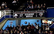 Four-and-a-half years after his junior career, the club honoured him in a ceremony prior to a game against the Kamloops Blazers on January 28, 2011, as part of "Gilbert Brulé Night". Brulé was the fourth alumnus added to the club's Ring of Honour, commemorating the team's best players; a plaque was unveiled inside the stadium bearing his name and the number 17 he wore on his jersey as a Giant.[37] At the end of the Giants' 2010–11 WHL season, they released their fan-voted "Top 10 Giants of the Decade", which listed Brulé at #2, behind Milan Lucic.[38]