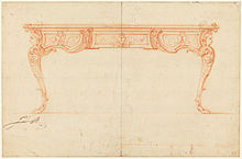 - ^ There are designs for clock cases veneered with Boulle marquetry of tortoiseshell and brass; a single signed drawing for a piece of furniture, a bureau plat in the manner of André Charles Boulle in red chalk, survives, in the Cooper-Hewitt Museum, New York; it is illustrated in Dell 1992: fig. 2 p.209; on the basis of the drawing, the design of the famous pair of commodes delivered for the Grand Trianon by Boulle in 1708 and 1709 (illustrated at André Charles Boulle) has been tentatively connected to Oppenordt by M.P. Eidelberg, "Watteau, Lancret, and the fountains of Oppenort", Burlington Magazine 110 (August 1968:448, fig. 23), noted by Dell 1992: 236 note 2.