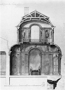 On his return to France in 1699 he failed to secure a post in the Bâtiments du Roi. His only known early commissions, for the high altar (demolished) for Saint Germain des Prés, Paris[7] and that of Saint-Sulpice (1704), gained for him the favour of the duc d'Orléans, soon to become Regent: in the year his father died (1713) he was listed as premier architecte of the duke. He remained an outsider, never taken into the Académie, but found private commissions, such as the engravings of the collection of the sculptor François Girardon (1710) while he added to his notebooks details of the most advanced recent French decorations, gaining fluency in the French idiom.