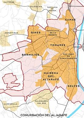 About the 2000s, the land of Gines was almost completely built-up and reached the neighbor municipalities, forming the Aljarafe conurbation, within the metropolitan area of Seville. In the 1990s, the Servialsa Industrial Park was built at the southern end of the municipal boundary, to replace industries which were being relocated to other towns due to residential pressure. In the 2010s, the industrial park was extended and reached the limits of the nearby towns of Bormujos and Espartinas.