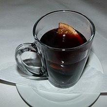 Mulled wine, also known as spiced wine, is a beverage usually made with red wine along with various mulling spices and sometimes raisins. It is served hot or warm and is alcoholic, although there are non-alcoholic versions of it.[1] It is a traditional drink during winter, especially around Christmas.[2] It is served at Christmas markets in Europe.