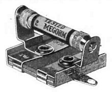 Early applications of triode tubes (Audions) as detectors usually did not include a resistor in the grid circuit.[3][4] First use of a resistance to discharge the grid condenser in a vacuum tube detector circuit may have been by Sewall Cabot in 1906. Cabot wrote that he made a pencil mark to discharge the grid condenser, after finding that touching the grid terminal of the tube would cause the detector to resume operation after having stopped.[5] Edwin H. Armstrong, in 1915, describes the use of "a resistance of several hundred thousand ohms placed across the grid condenser" for the purpose of discharging the grid condenser.[6] The heyday for grid leak detectors was the 1920s, when battery operated, multiple dial tuned radio frequency receivers using low amplification factor triodes with directly heated cathodes were the contemporary technology. The Zenith Models 11, 12, and 14 are examples of these kinds of radios.[7] When screen-grid tubes became available for new designs in 1927, most manufacturers switched to plate detectors,[8][2] and later to diode detectors. The grid leak detector has been popular for many years with amateur radio operators and shortwave listeners who construct their own receivers.