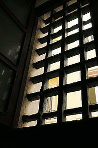 A grille or grill (French word from Latin craticula, small grill) is an opening of several slits side-by-side in a wall, metal sheet or another barrier, usually to allow air or water to enter and/or leave and prevent larger objects (such as animals) from going in or out.[1]