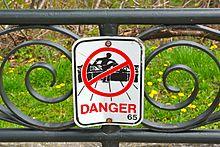 In cities occasionally pedestrian railings (and barriers) are installed at the immediate side of a roads however cyclists have died when crushed against them by motor vehicles.[28][29] Close "safety barriers" to roads have been found to increase the chances of injury to pedestrians for a number of reasons including increasing inattention of drivers and pedestrians.[30] For these reasons some councils in the United Kingdom have removed their pedestrian railings.[30] This was after London's Royal Borough of Kensington and Chelsea did so and found that the rate of injury to pedestrians decreased three times faster than elsewhere in the city.[30]