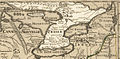 This map covers areas which today are countries including Iraq, Afghanistan, Iran, Kuwait, Uzbekistan, Turkmenistan, Tajikistan, Armenia, and the republic of Azerbaijan. The map also contains parts of today’s Russia, Pakistan, Turkey, Ukraine, Kazakhstan and the Arabian Peninsula.[23] In the map Delisle has drawn mountains and connecting roads between cities.[24]