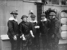 German aerial reconnaissance spotted the convoy on 22 December, and Scharnhorst, escorted by five destroyers of the 4th Destroyer Flotilla, sailed on 25 December to intercept it. The resulting engagement became known as the Battle of North Cape.[11] The Germans were spotted on the morning of 26 December and were engaged by the covering force that consisted of the cruisers HMS Belfast, HMS Sheffield, HMS Norfolk and four destroyers. Meanwhile, HMS Jamaica and HMS Duke Of York approached from the south west, barring the Scharnhorst's path of retreat. The German battleship turned for her base at Altafjord in the early afternoon after two brief encounters with the British cruisers. She was spotted by Duke of York's Type 273 radar at a range of 45,500 yards (41,600 m) and Duke of York opened fire half an hour later. Jamaica fired her first salvo a minute after, and hit Scharnhorst on her third broadside. She was forced to cease fire after 19 volleys as the German ship was faster in the heavy seas than the British ships, and was opening up the range despite heavy damage from the British shells. One shell from Duke of York's last volley penetrated into Scharnhorst's Number One boiler room and effectively destroyed it. This reduced the German ship's speed sufficiently for the British destroyers to catch up and make four torpedo hits using a pincer attack. This slowed the ship again, so that Jamaica and Duke of York also caught up and opened fire at a range of 10,400 yards (9,500 m). They hit the German ship continually, but she was not sinking after 20 minutes of firing so Jamaica was ordered to torpedo her. Two torpedoes from her first volley of three missed and the third misfired, so the cruiser had to turn about to fire her other broadside of three, two of which appeared to hit. Belfast and the destroyers also fired torpedoes before Scharnhorst finally sank.[12]