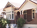Haberfield espoused the philosophy of the Garden Suburb with its gardens containing distinctive planting, fences, gates and curving tiled paths. Houses in Haberfield were typically 'detached' double-brick dwellings situated on their own block of land measuring 50' x 150' (15 m x 45 m). No two houses were alike, although there were many common themes throughout the suburb. The roofs were either slate or Marseilles tile. All had front verandahs. Decorative features typically used in this area include leadlight windows depicting Australian flora and fauna, Art Nouveau timber detailing and tuckpointed brickwork.[24]