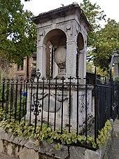 His grave is shared with his wife Elisabeth[b] who died in 1724.