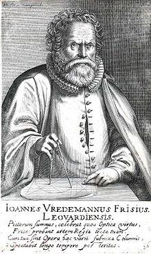 Hans Vredeman de Vries (1527 – c. 1607) was a Dutch Renaissance architect, painter, and engineer. Vredeman de Vries is known for his publication in 1583 on garden design and his books with many examples on ornaments (1565) and perspective (1604).