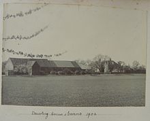 The Grand Junction Canal runs through the Dawley land, east to west: it was constructed c. 1794–1800.[7] In the late 1830s the main line of the Great Western Railway was also built across the former Dawley Park (by then Dawley Wall Farm). However, Hayes & Harlington railway station (just outside the parish) was not opened until 1864. Before then there was a choice of the stations at West Drayton and Southall, or of the daily omnibus and weekly carrier to London.[8]