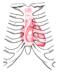 | Mitral valve (to left ventricle) | left fifth intercostal space | left midclavicular line |