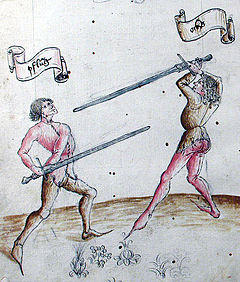 The Royal Armouries Ms. I.33 (also known as the "Walpurgis" or "Tower Fechtbuch"), dated to ca. 1300,[1] is the oldest surviving Fechtbuch, teaching sword and buckler combat.