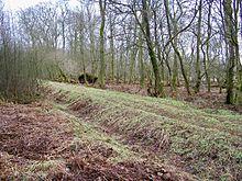 A large number of enclosure sites have been identified from aerial photographs in the Solway Plain. There are also possible sites re-used by the Romans at Bousted Hill and Fingland, as well as at Ewanrigg[42] and Edderside.[43] Early Iron Age finds in West Cumbria are limited to sites at Eskmeals and Seascale Moss (with another bog body). In the south, 'hillforts' have been identified at Skelmore Heads, Castle Head, Warton Crag and an enclosure at Urswick. However, Cumbria appears not to have any of the so-called 'developed hillforts' (enlarged from earlier versions, around 3–7 ha in area, with multiple ditches and complex entrances),[44] suggesting that few, if any, were still being used in the pre-Roman Iron Age, apparently having been abandoned.[45]