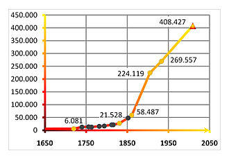 | 1816 | 21,528 | incl. 742 Catholics and 74 Jews.[23] |
