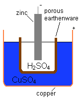 The Fuller cell was developed from the Poggendorff cell. Although the chemistry is principally the same, the two acids are once again separated by a porous container and the zinc is treated with mercury to form an amalgam.