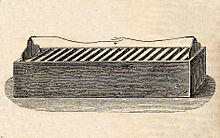 Volta's original pile models had some technical flaws, one of them involving the electrolyte leaking and causing short-circuits due to the weight of the discs compressing the brine-soaked cloth. A Scotsman named William Cruickshank solved this problem by laying the elements in a box instead of piling them in a stack. This was known as the trough battery.[3] Volta himself invented a variant that consisted of a chain of cups filled with a salt solution, linked together by metallic arcs dipped into the liquid. This was known as the Crown of Cups. These arcs were made of two different metals (e.g., zinc and copper) soldered together. This model also proved to be more efficient than his original piles,[4] though it did not prove as popular.