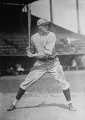 The triple, in which the batter reaches third base without being put out, and without the benefit of a fielding error, is often called the "hardest part of the cycle" to complete.[32] Hitting a triple often comes under similar hit placement as a double, but may require impressive speed on the part of the runner.[33] Because of this, it is rare to see a player with slower-than-average running speed complete the cycle, but it has happened, such as when catcher Bengie Molina hit for the cycle on July 16, 2010; Molina described himself as "the [slowest] guy in baseball" earlier that season.[34] The MLB all-time leader in triples is Sam Crawford, who completed the three-base hit 309 times in his career;[35] however, none of those triples was ever part of a cycle. Of the top five players in MLB history in triples, two – Honus Wagner and Roger Connor—have hit for the cycle: Connor in 1890 and Wagner in 1912.[3] The MLB single-season record holder for triples, Chief Wilson, hit for the cycle in 1910,[3] two years before his record-setting season in which he hit 36 triples.[36]