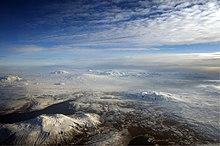 Aerial photograph of Iceland, with Hlöðufell to the left in the middleground