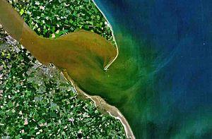 The estuary is shallow because of this constant deposition. Isostatic recoil is, however, causing the area to sink at the rate of 3 mm annually and global warming is making the sea level rise.[5] The combined effects of these processes mean that the sea in the estuary may be half a metre higher by the year 2050. A large area around the estuary consists of land which lies below the present high-water mark. Flood defences offer only a short-term and local answer and may actually increase the long-term risks. Managed realignment of the coast by setting back the coastal defences will provide new intertidal habitats and harness natural equalising processes and is the preferred long term solution.[5]