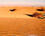 The common name sidewinder alludes to its unusual form of locomotion, which is thought to give it traction on windblown desert sand, but this peculiar locomotor specialization is used on any substrate over which the sidewinder can move rapidly. As its body progresses over loose sand, it forms a letter J-shaped impression, with the tip of the hook pointing in the direction of travel. Sidewinding is also the primary mode of locomotion in other desert sand dwellers, such as the horned adder (Bitis caudalis) and Peringuey's adder (Bitis peringueyi), but many other snakes can assume this form of locomotion when on slick substrates (e.g., mud flats). Sidewinder rattlesnakes can use sidewinding to ascend sandy slopes by increasing the portion of the body in contact with the sand to match the reduced yielding force of the inclined sand, allowing them to ascend up to the maximum possible sand slope without slip.[10] In cybernetics, incorporating this control scheme into a snakebot can enable the robot to replicate sidewinding movement.[10]